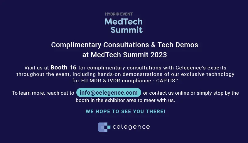 Celegence invites you to join us for MedTech Summit 2023: The Flagship Regulatory Event for the Medical Device and In Vitro Diagnostic Industry taking place in Brussels, Belgium from 19 – 23 June 2023.