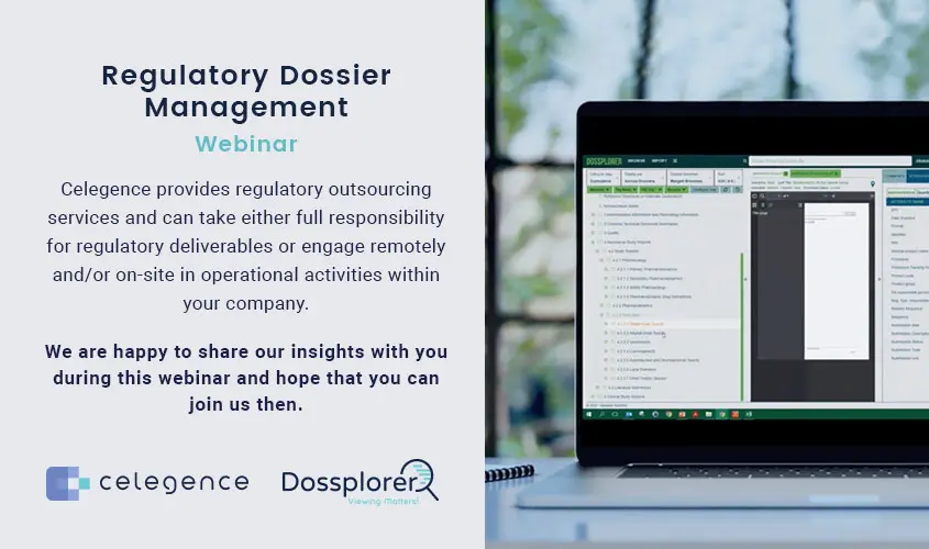 Celegence provides regulatory outsourcing services and can take either full responsibility for regulatory deliverables or engage remotely and/or on-site in operational activities within your company. Our team has vast experience with the compilation, submission, and maintenance of regulatory dossiers, registration tracking, IDMP, xEVMPD, document, and data migration. The innovative technologies at Celegence help Life Science organizations reduce their costs and time to market to support product development and submission strategies. Our solutions enable optimal reusability and consistency by transparent management of recordings and documentation of regulated information, across data, documents and dossiers.